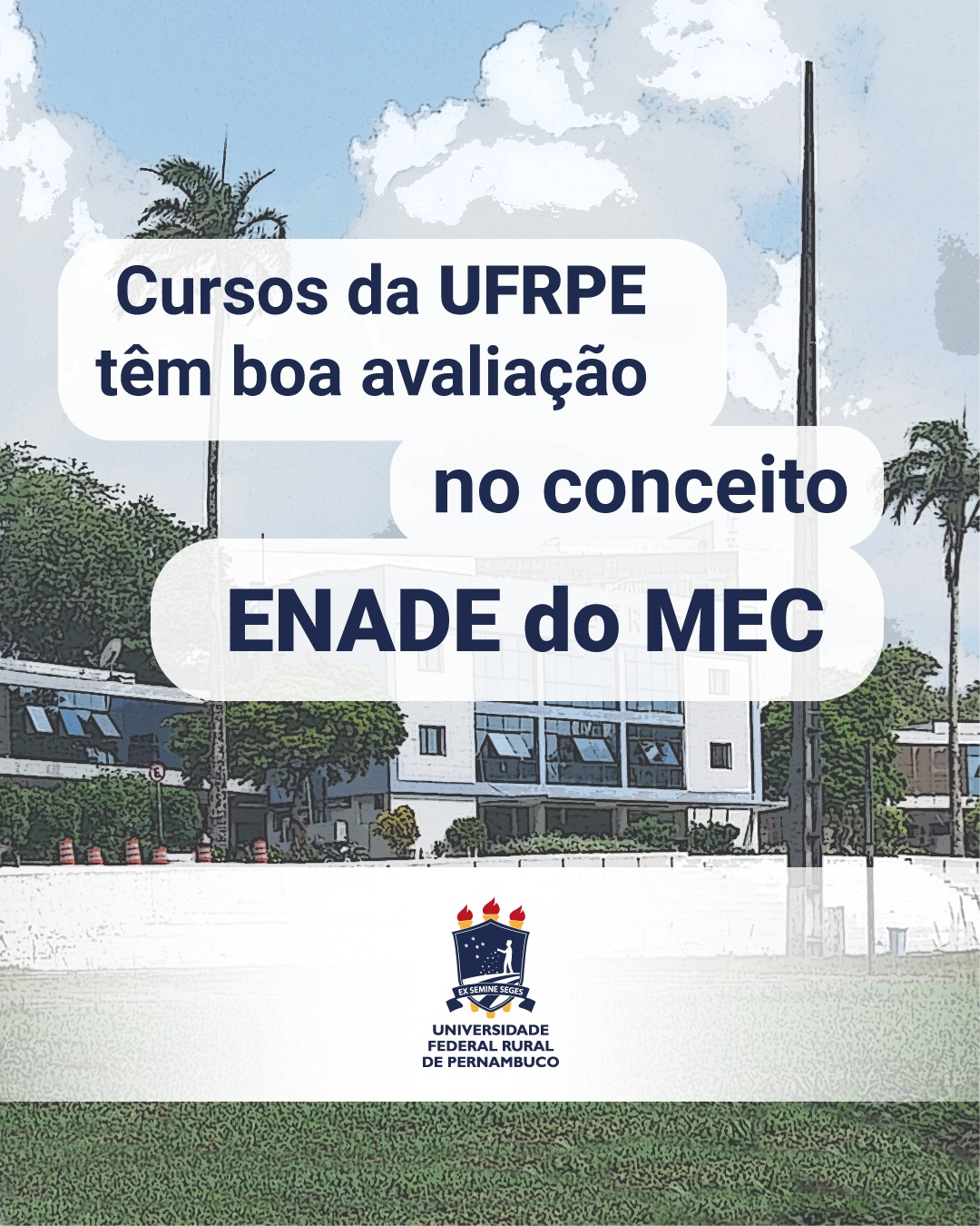 A UFRPE comemora mais uma evolução nas avaliações dos cursos de graduação. Nesta sexta-feira (11) foi divulgado o resultado do Exame Nacional de Desempenho dos Estudantes (Enade/MEC- 2023) para os cursos de Agronomia, Medicina Veterinária, Zootecnia, Engenharia Florestal, Engenharia Civil, Engenharia Mecânica e Engenharia Elétrica.