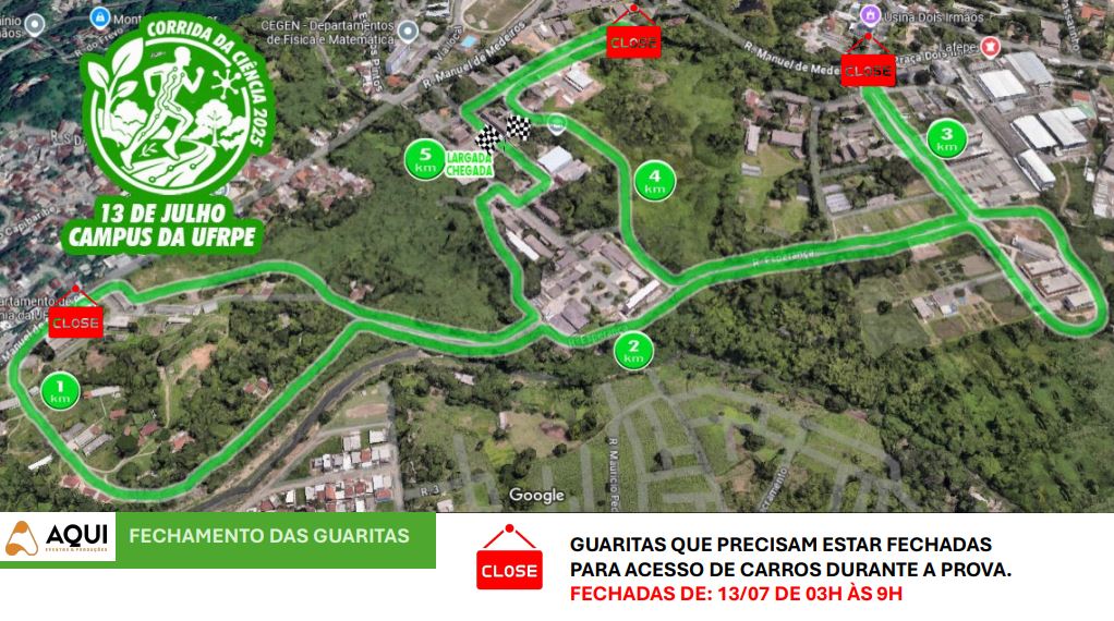 A Universidade Federal Rural de Pernambuco (UFRPE) informa que, em virtude da realização da Corrida da Ciência 2025, no próximo domingo, 13 de julho, o acesso de veículos ao campus sede estará temporariamente restrito em alguns pontos.