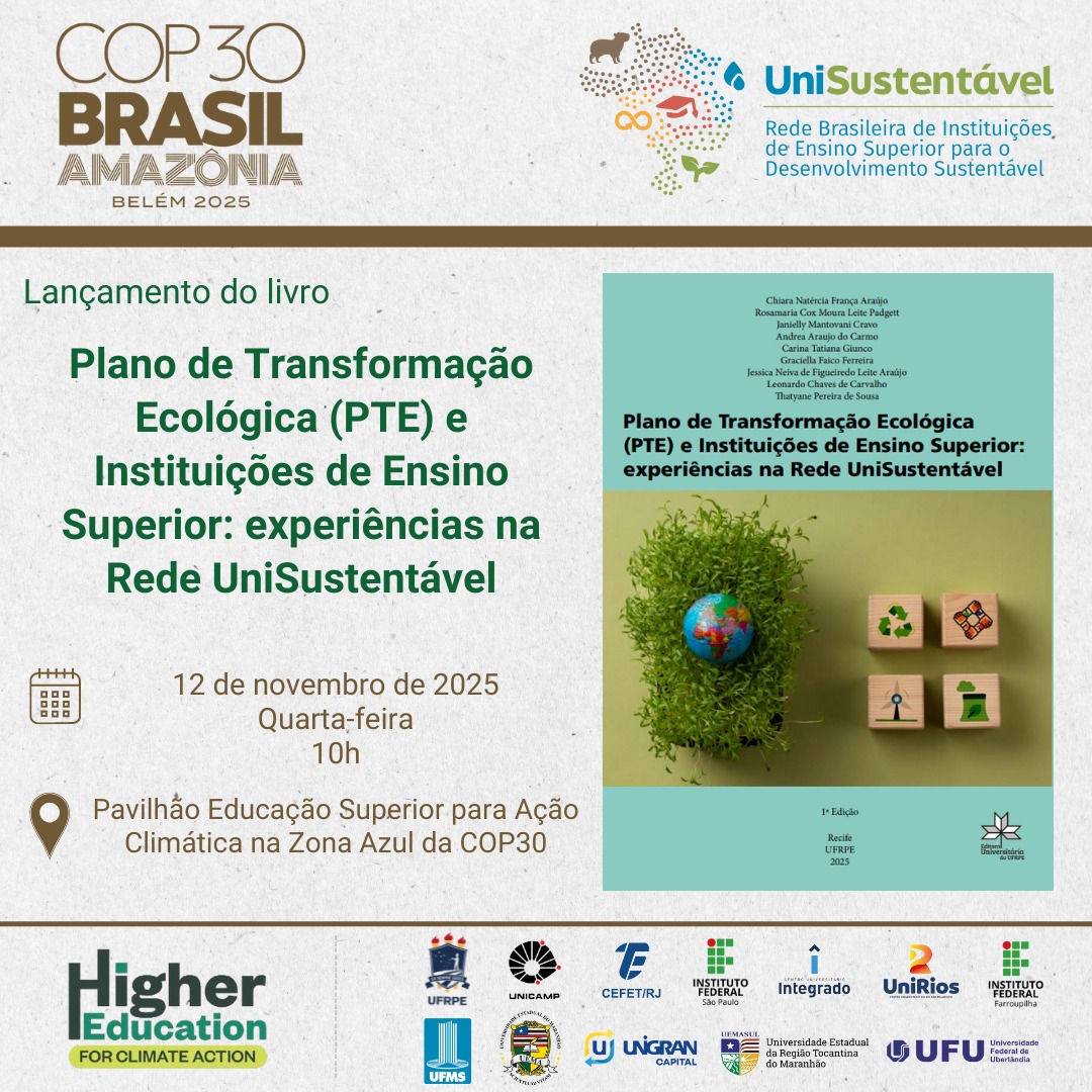 A obra reúne relatos inspiradores de Instituições de Ensino Superior (IES) que integram a Rede Brasileira de Instituições de Ensino Superior para o Desenvolvimento Sustentável (Rede UniSustentável), evidenciando experiências concretas de transformação ecológica e sustentabilidade alinhadas aos eixos do Plano de Transformação Ecológica (PTE).
