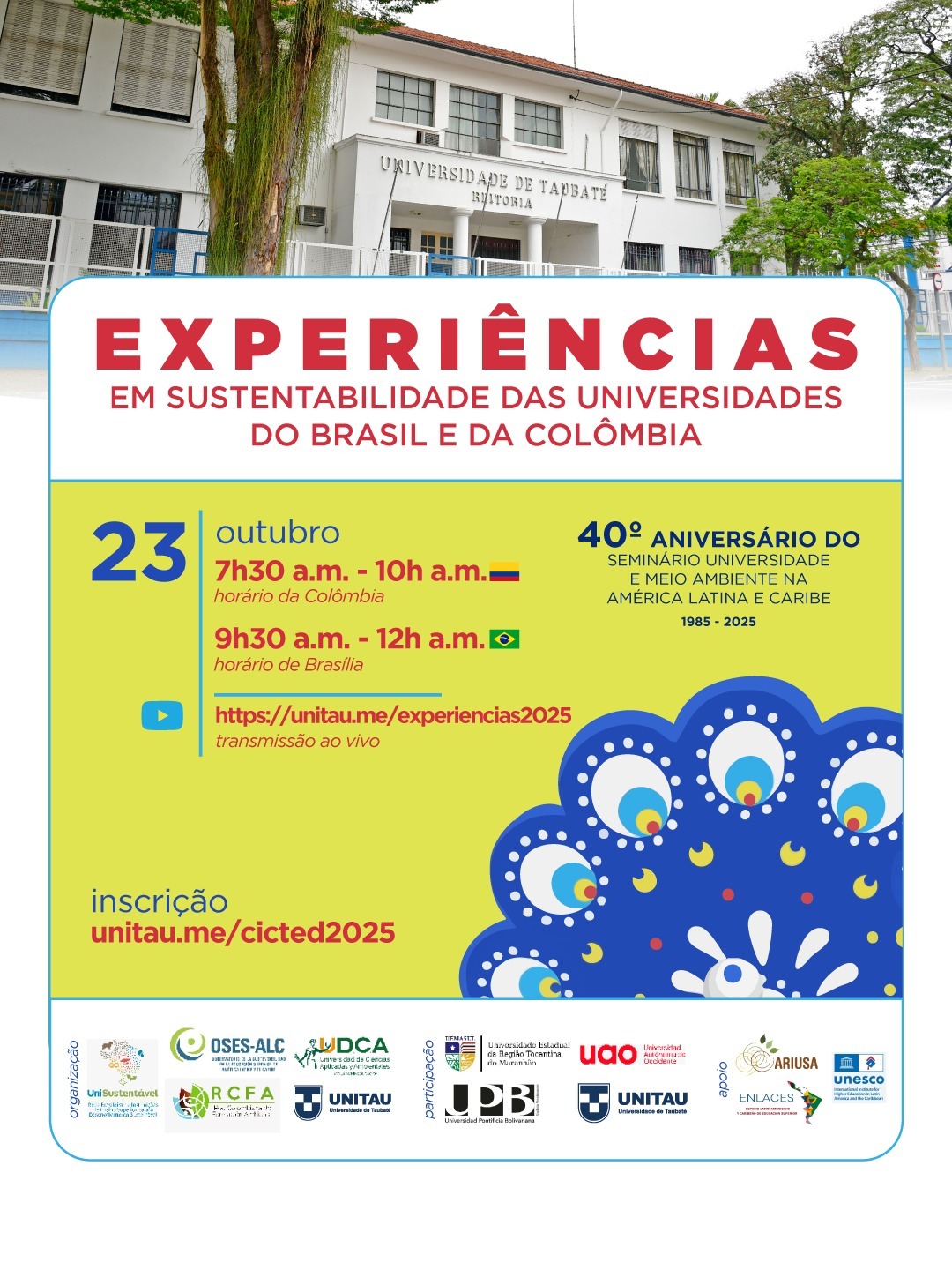 Com o objetivo de fortalecer o conhecimento mútuo e a cooperação acadêmica entre universidades latino-americanas, a Rede Brasileira de Instituições de Ensino Superior para o Desenvolvimento Sustentável (UniSustentável), a Rede Colombiana de Formação Ambiental (RCFA) e o Observatório da Sustentabilidade na Educação Superior da América Latina e do Caribe (OSES-ALC) realizam o segundo evento virtual da série “Experiências em Sustentabilidade das Universidades do Brasil e da Colômbia”